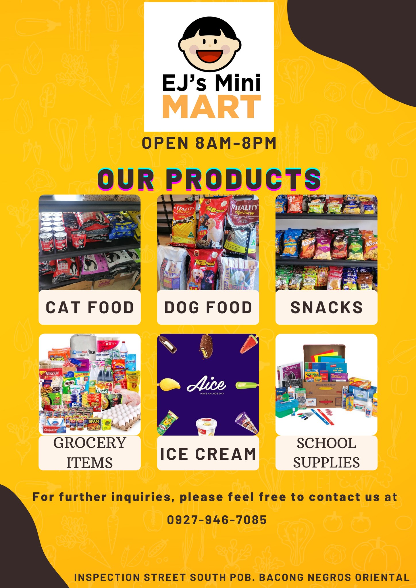 At EJ Minimart, we take pride in being a reliable and convenient source for groceries in Bacong and its surrounding areas. Our store has been serving the local community since 2022. As a family-owned business, we understand the importance of personalized service and strive to create a welcoming environment for everyone who walks through our doors.